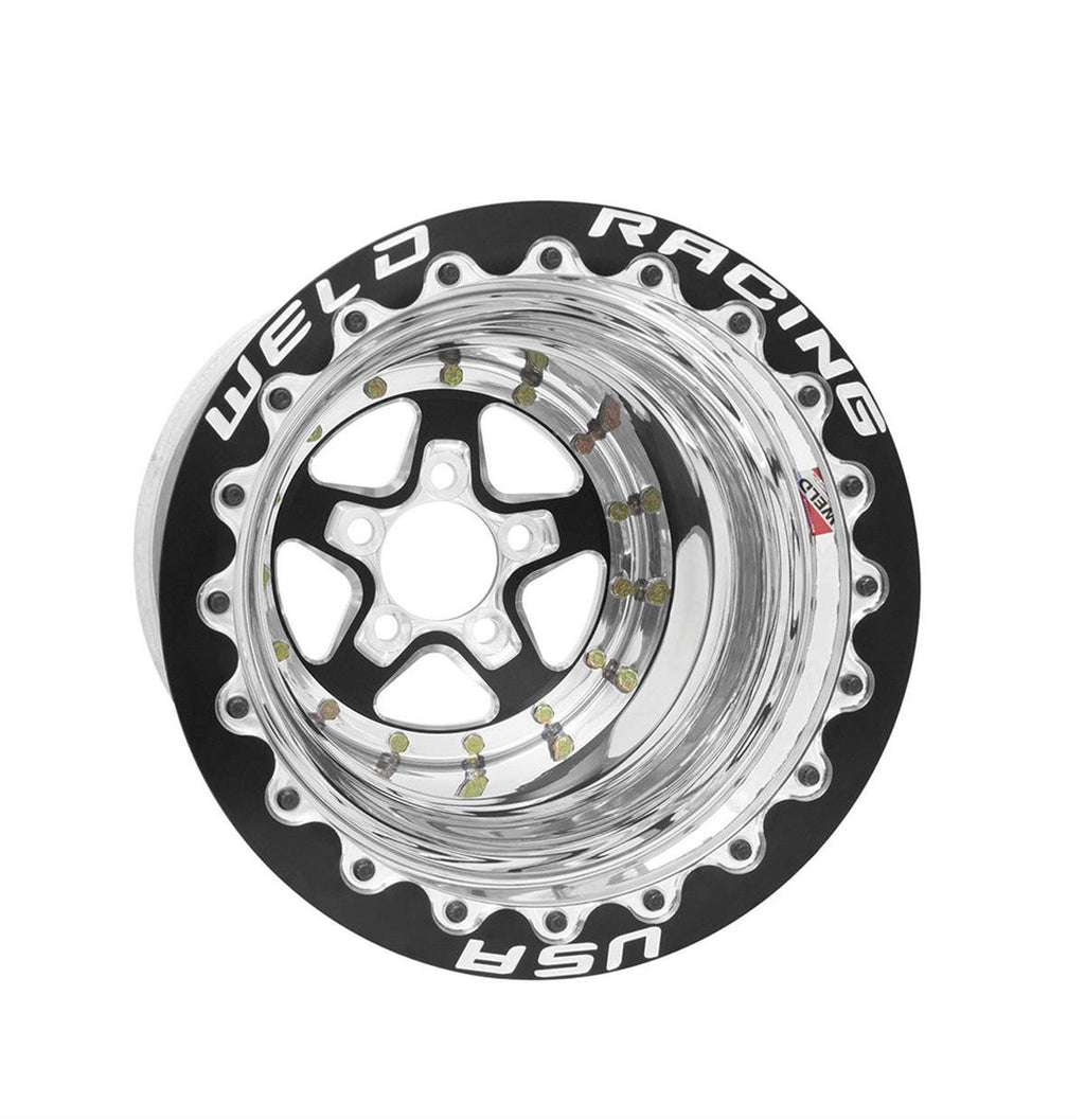 The choice of many racers, Weld Racing AlumaStar 2.0 polished Mickey Thompson beadlock wheels are a 2-piece design with a 5-spoke forged center. Weld bolts them to cold-forged aluminum rim halves with 5/16 in. Grade 8 bolts. Weld AlumaStar 2.0 wheels are NHRA-accepted in all classes and are over twice as strong as SFI 15.1 race wheel specs require them to be. These wheels feature a smaller bead area designed for use with Mickey Thompson tires.Brand: Weld Racing