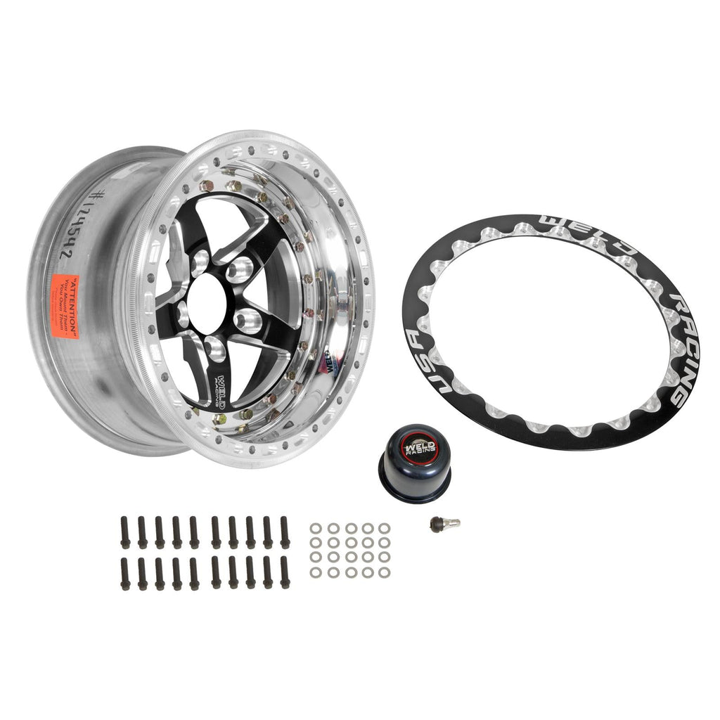 Weld Racing Weldstar RT black anodized wheels are true street/strip wheels. These are the solution for late model performance brake clearance issues, while being equally at home on traditional muscle cars and other performance applications. Built from 3-piece modular construction, these wheels utilize forged centers and cold-forged rim shells for proven strength and durability for street-driven applications. The 15 in. RT Series wheels clear OE brake calipers on most 17 in. OE wheel applications without caliper modifications. Weld Weldstar RTs include matching center caps.Brand: Weld Racing