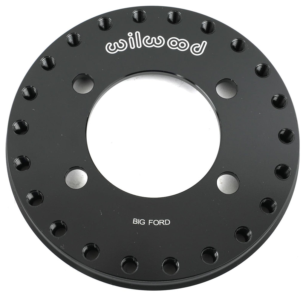 Notes: This unit features a universal-fit design for the Big Ford rear-end (either side), a 2.36 in. offset, and a quantity of 22 pre-drilled 3/8 in.-16 holes for clocked caliper brackets or accessory mounting.