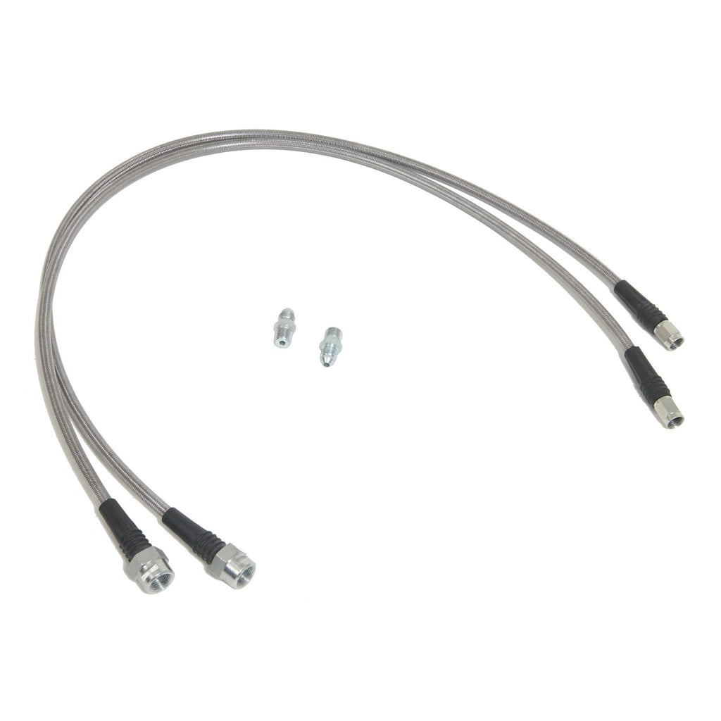 Wilwood stainless steel braided Flexline kits are manufactured to high-quality standards and are available in various styles. These premium-grade kits deliver a "hard-line" feel and have been designed for specific applications as terrific replacements for OE rubber hoses. All required fittings are included.Brand: Wilwood Disc Brakes