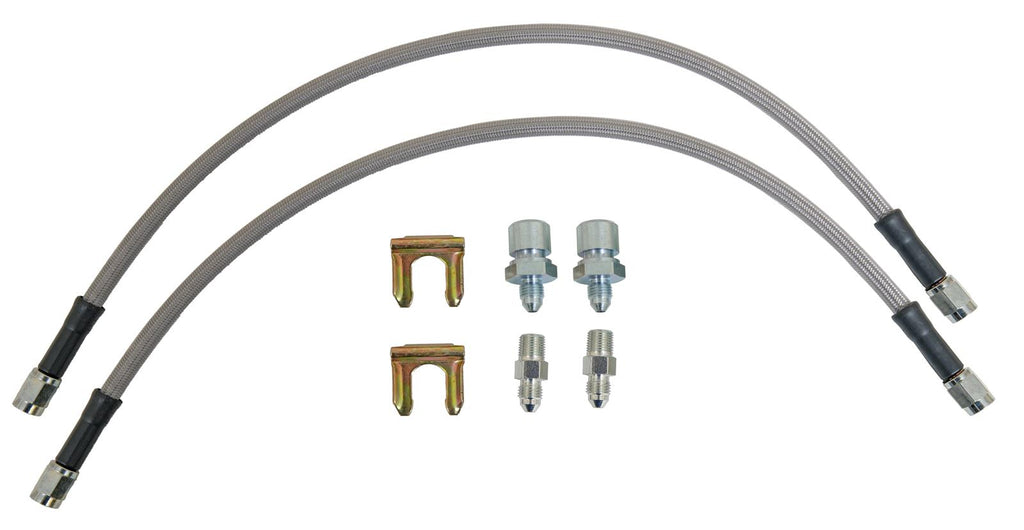 Wilwood stainless steel braided Flexline kits are manufactured to high-quality standards and are available in various styles. These premium-grade kits deliver a "hard-line" feel and have been designed for specific applications as terrific replacements for OE rubber hoses. All required fittings are included.Brand: Wilwood Disc Brakes