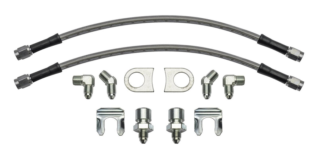 Wilwood stainless steel braided Flexline kits are manufactured to high-quality standards and are available in various styles. These premium-grade kits deliver a "hard-line" feel and have been designed for specific applications as terrific replacements for OE rubber hoses. All required fittings are included.Brand: Wilwood Disc Brakes
