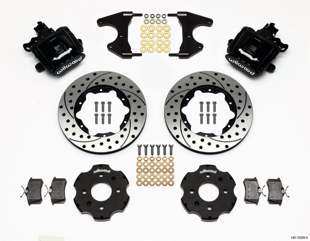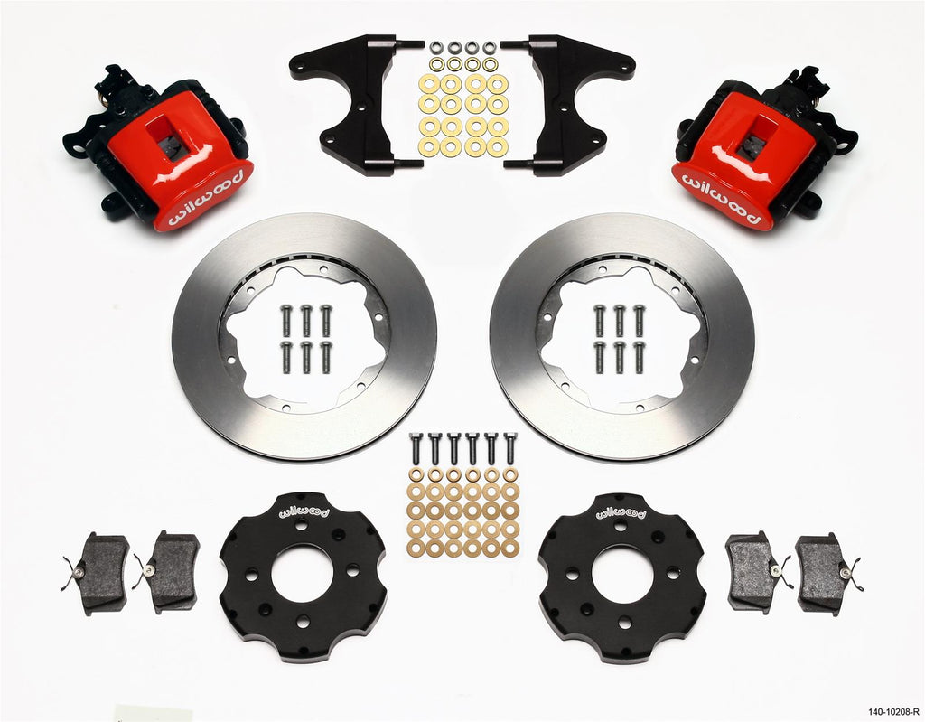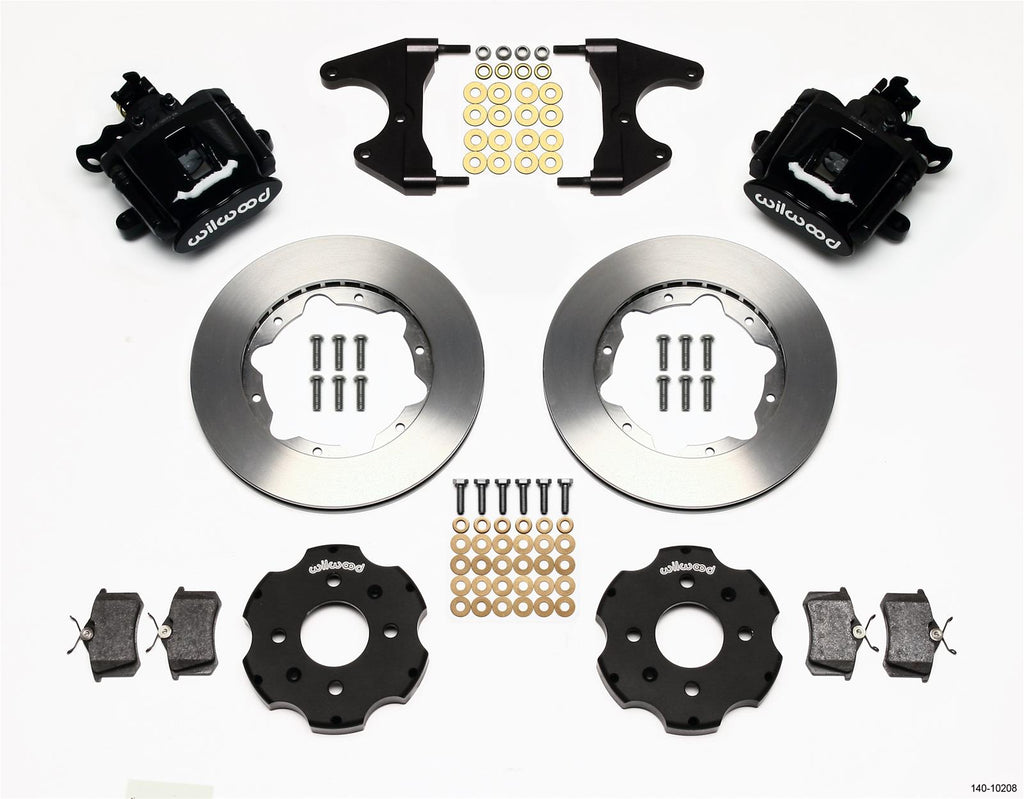 These Wilwood CPB disc brake kits use hydraulic pressure from the master cylinder for stopping power and an internal mechanical lock within the caliper for a parking brake. They are built primarily for front-wheel drive and select rear-wheel drive vehicles with axles that are not well suited for internal shoe-style parking brakes. The kits include single-piston brake calipers, coupled with oversized two-piece brake rotor assemblies with aluminum hats and high-friction BP-10 compound brake pads. The Wilwood CPB disc brake kits also provide the correct balanced brake performance and matching style to complement front big brake upgrade kits.Brand: Wilwood Disc Brakes