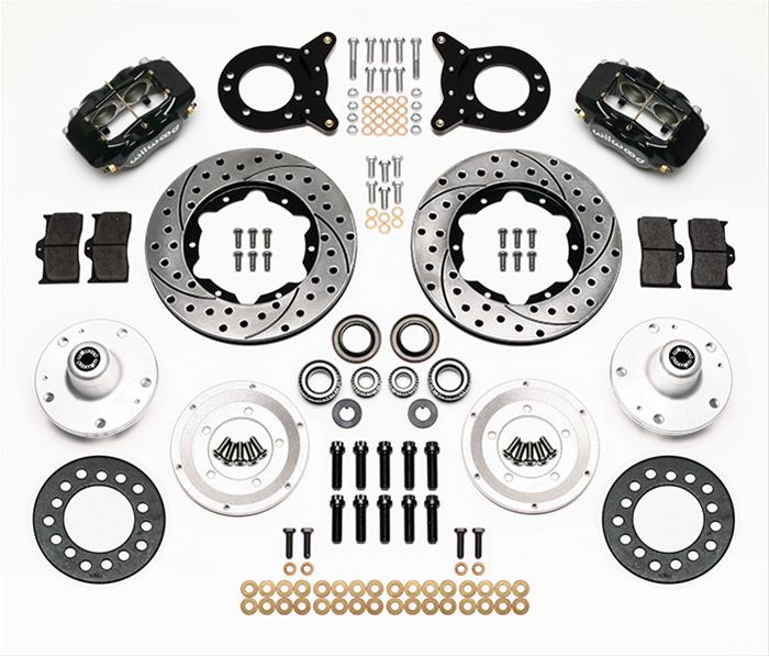Wilwood's Forged Dynalite Pro series front disc brake kits are designed to provide unmatched performance with classic, high-tech styling for a wide variety of street rods, musclecars, hot rods, and heavy drag cars. The kits combine the powerful clamping force of Dynalite calipers with the added performance and cooling capacity of competition-style vented rotors. Other features include hubs, brake pads, caliper brackets, mounting hardware, and detailed instructions for an easy bolt-on installation. In addition to everything else, these kits can also cut as much as 35 lbs. off of your front-end.Brand: Wilwood Disc Brakes