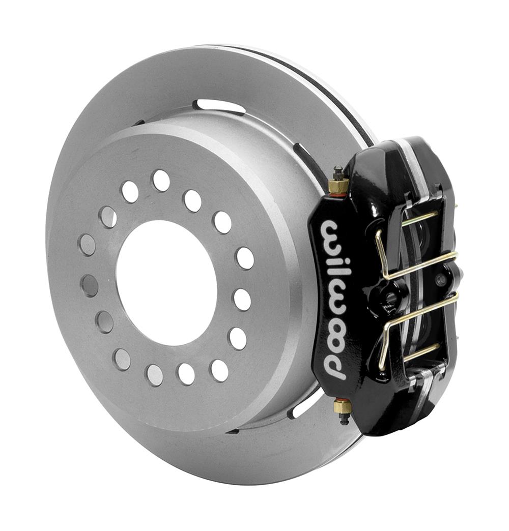 Wilwood Forged Dynapro Low-Profile Dust Seal Pro-Series rear disc brake kits offer a complete solution for popular muscle car rear axles on applications that require a parking brake assembly and extra clearance for 14 in. to 15 in. rim applications. Forged billet Dynapro Low-Profile 4-piston calipers with dust seals, 11 in. one-piece hat and rotor assemblies, and high-friction pads provide optimized and balanced braking for all types of custom performance street/strip and show machines. The neatly hidden internal shoe system provides a clean installation with superior static holding power for parking. Optional caliper finishes and rotor designs enable the builder to personalize the style and optimize brake performance for every individual application.Brand: Wilwood Disc Brakes