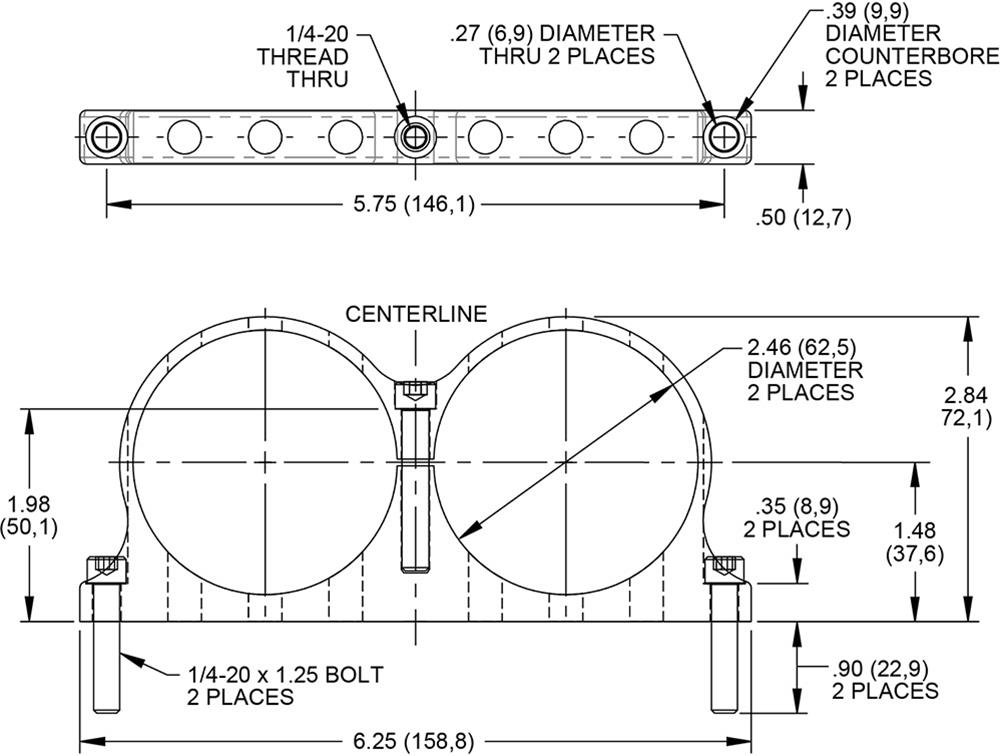 Notes: Bracket has two 2.46 in. I.D. holes. Holds 2 reservoirs.