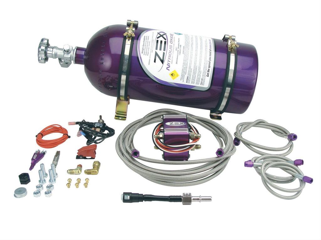 These ZEX Dodge Hemi truck nitrous systems are designed to safely add 75-125 hp to 2003 and later Dodge trucks with the Hemi engine. The late model Hemi electronic fuel injected engines are the perfect platform for nitrous upgrades. The systems have several unique features, including an inline-style fuel adapter that simply snaps into place. The Hemi trucks also have a relatively high base fuel pressure (58 psi), which requires a special jet selection that's included in the systems for perfect tuning. The ZEX Dodge Hemi truck nitrous systems are activated at wide-open throttle with advanced electronics that monitor your throttle position sensor. They include a nozzle with active fuel control built-in. This monitors bottle pressure and when the systems are engaged, it adds or subtracts enrichment fuel so that the engine never runs to rich or too lean.Brand: Zex Nitrous Oxide Systems